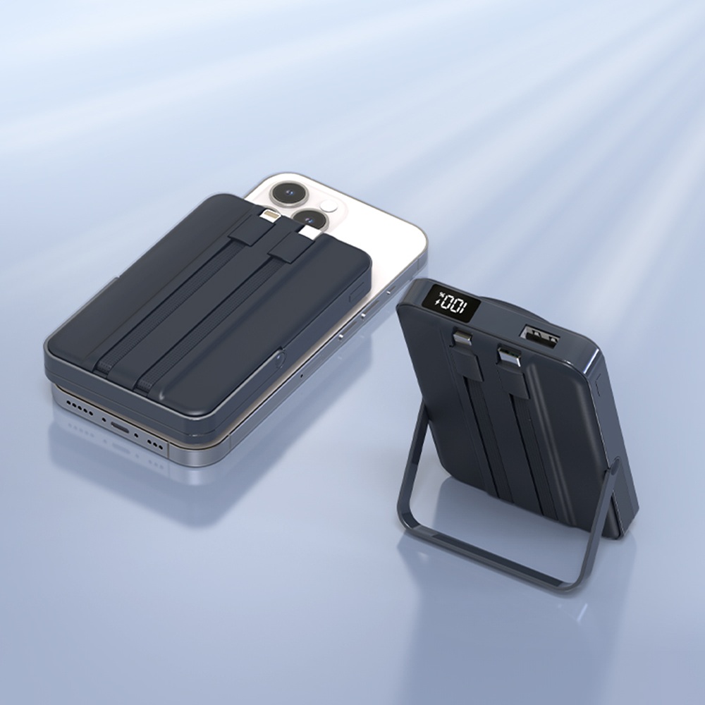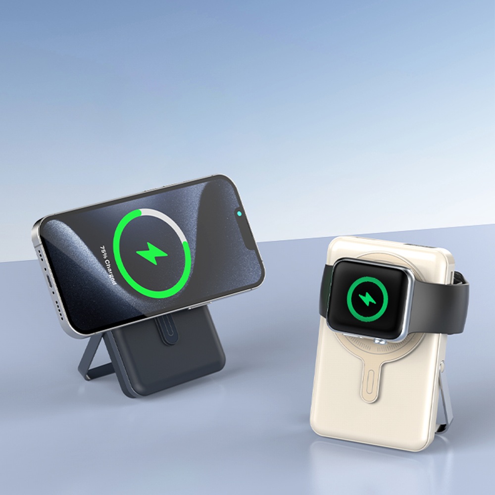 All in 1, 10000mAh build in type-c cable and lightning cable with kickstand for phones, iWatch power bank